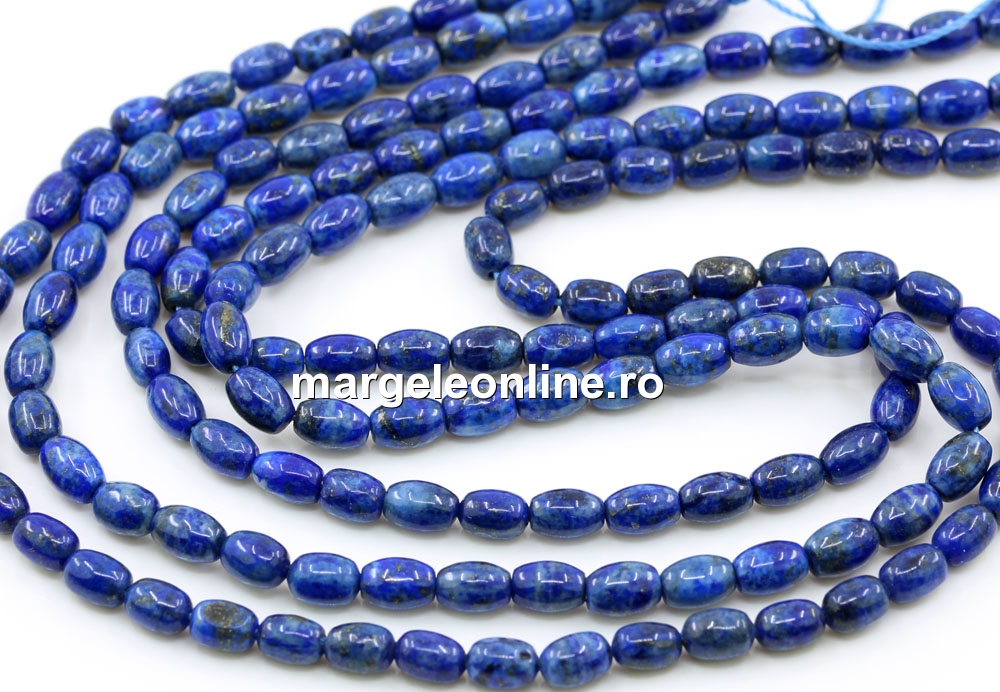 Margele lapis lazuli, forma: butoias oval, marime: 6x4mm, lungime sirag: 40cm. Pretul este pentru un sirag fara sistem de inchidere.