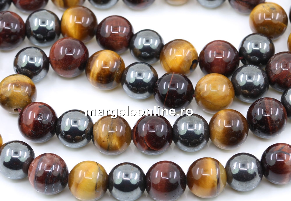 Margele mix Ochi de tigru si hematit, rotund, 10.5mm