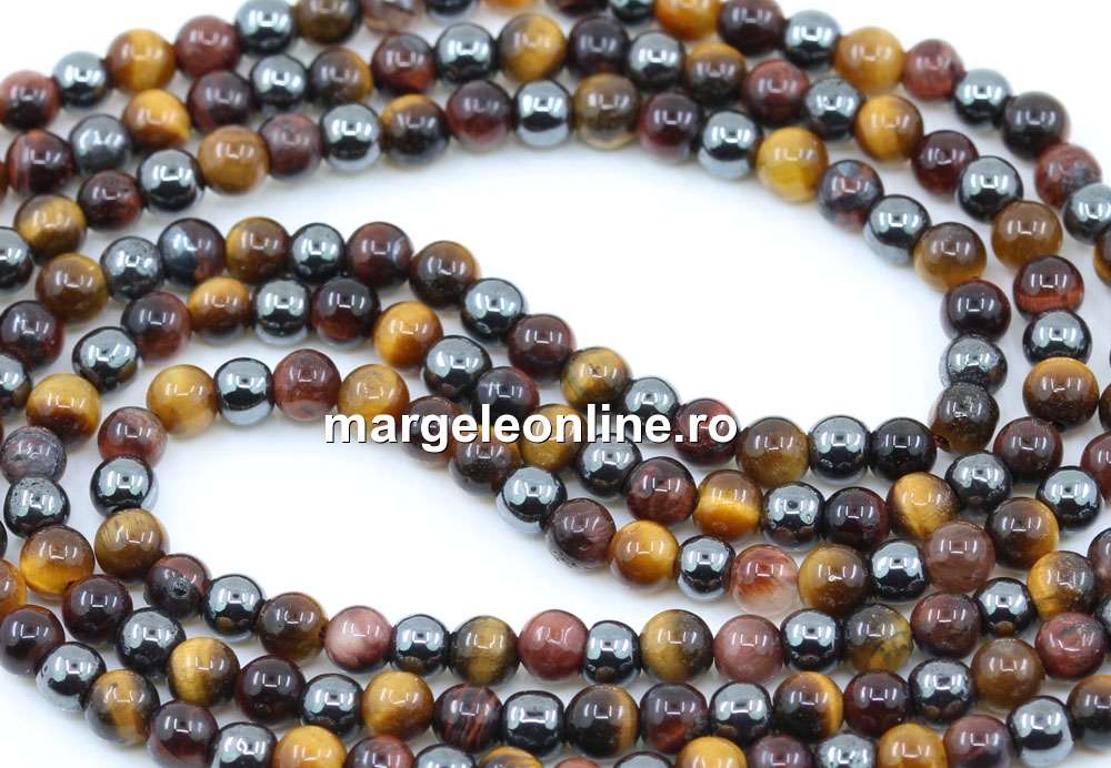 Margele mix Ochi de tigru si hematit, forma: rotund, marime: 4.5mm, lungime sirag: 38.5cm. Pretul este pentru un sirag fara sistem de inchidere.