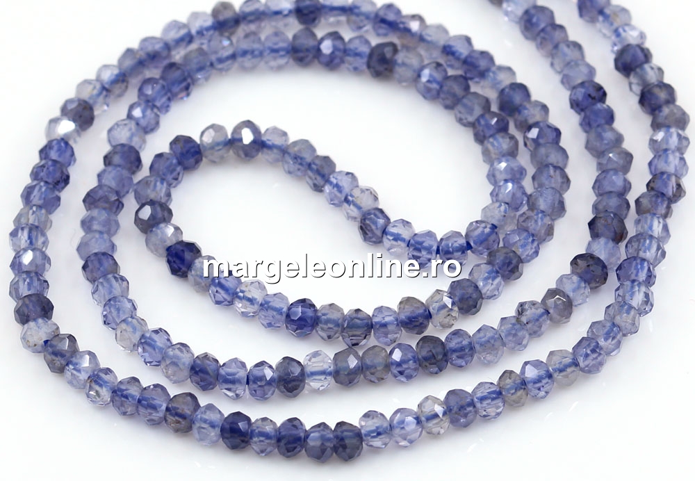 Margele tanzanit, forma: rondele fatetate, marime: 3x2mm, lungime sirag: 39.5cm. Pretul este pentru un sirag fara sistem de inchidere.