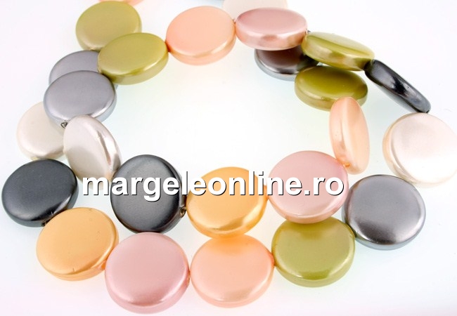 Perle tip Mallorca, forma: banut, dimensiune: 15x5mm. Pretul se refera la 1 sirag cu 24 elemente.