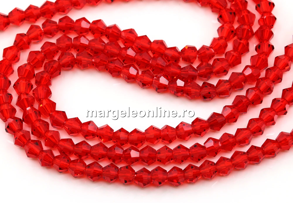 Sirag margele cristal, biconic fatetat, rosu, 4mm