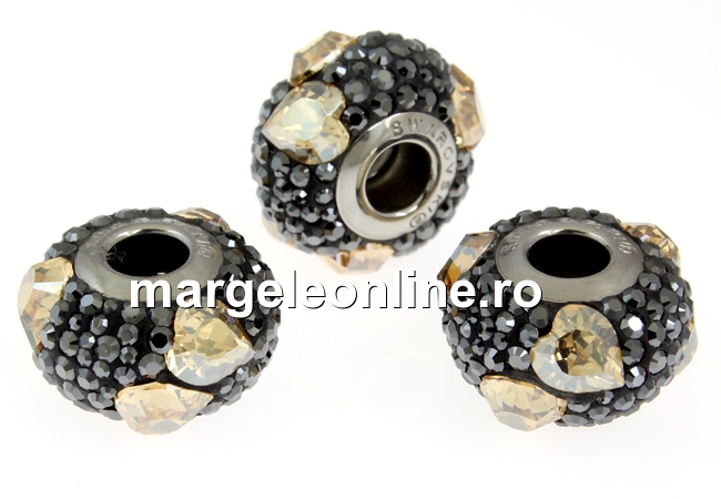 Swarovski, becharmed pave jet hematite, 14.5mm - x1