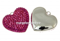 Swarovski, pand. pave placat cu rodiu, inima, fucsia, 20mm - x1