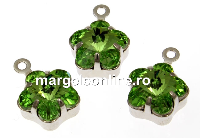 Swarovski, pand.pl. cu rodiu, floare, peridot, 13mm - x2