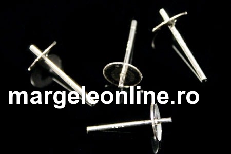 Tortite cercei cu platou de 5mm: accesorii bijuterii argint 925, marcat, dimensiune lungime 13mm, pin 2mm. Pinul se poate taia pentru lipirea cabochoanelor fara orificii. Pretul se refera la 1 pereche.