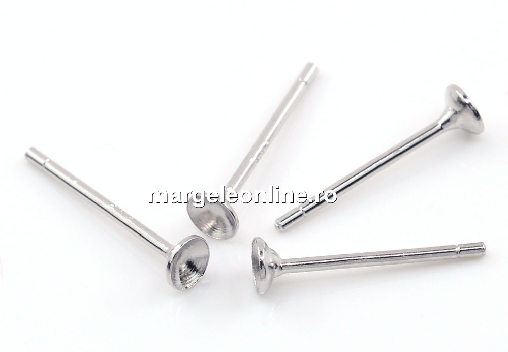Tortite cercei tija, argint 925 placat cu rodiu, cupa 3mm - x1