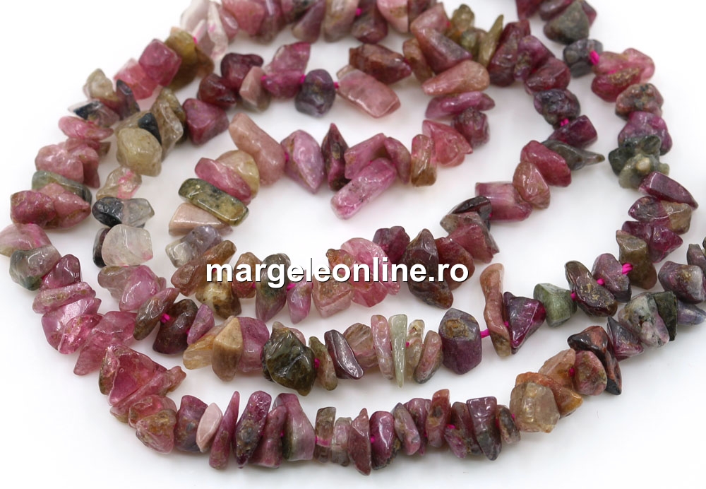 Turmalina naturala, pietre semipretioase, forma: chips, lungime sirag: cca 41cm, dimensiune piatra: variaza de la 4-mm. Pretul se refera la un sirag .